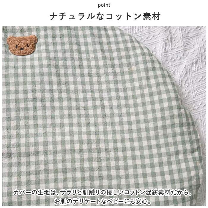 ・カバーの生地は、サラリと肌触りの優しいコットン混紡素材だから、お肌のデリケートなベビーにも安心。