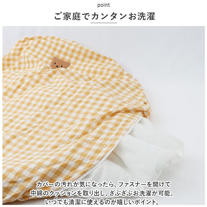 ・カバーの汚れが気になったら、ファスナーを開けて中綿のクッションを取り出し、ざぶざぶお洗濯が可能。いつでも清潔に使えるのが嬉しいポイント。