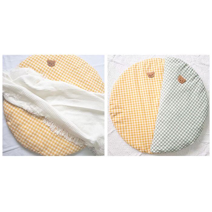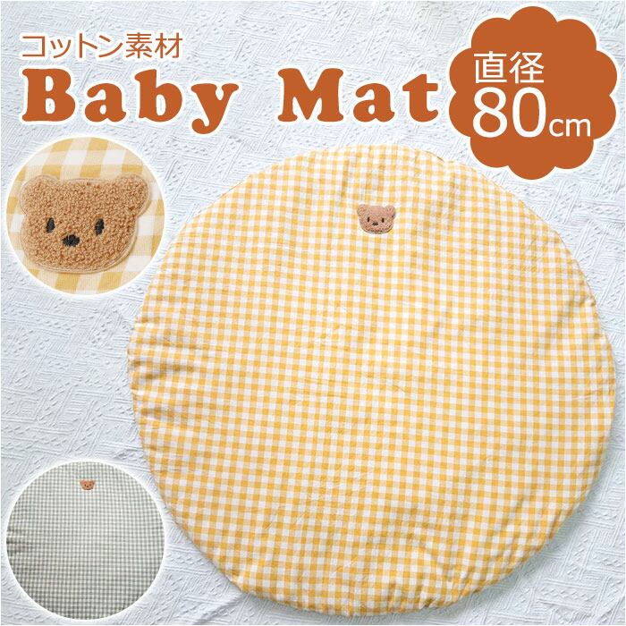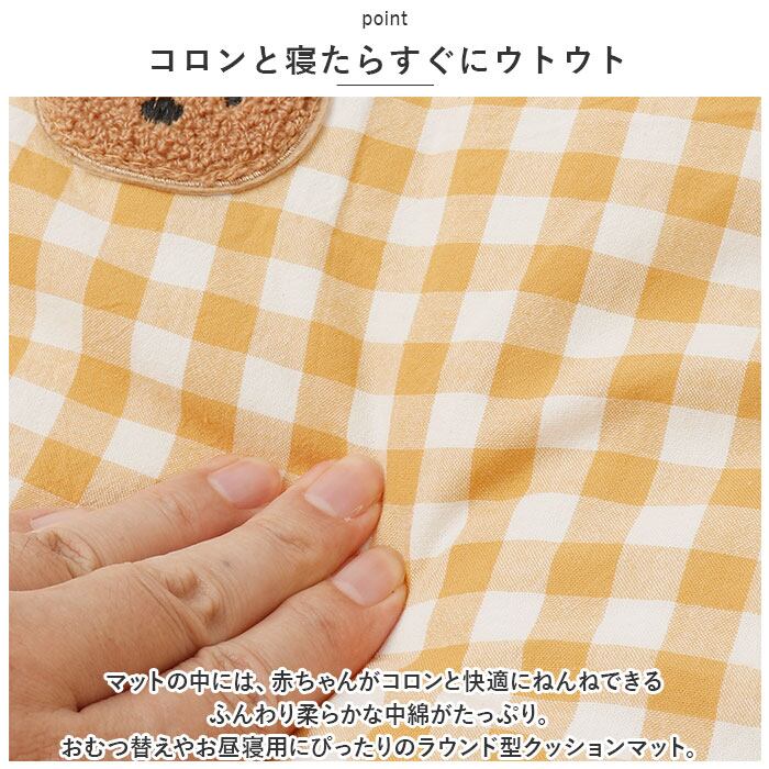 ラウンドマット 通販 ベビーラグマット クッション プレイマット お遊びマット ベビーマット ラグ マット 円形 チェック柄 キッズルーム 子供部屋 お昼寝 赤ちゃん 子ども 子供 寝相フォト お昼寝アート フロアーマット かわいい おしゃれ くま