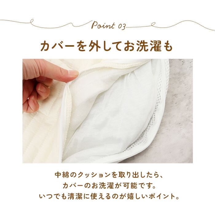 ・カバーの汚れが気になったら、ファスナーを開けて中綿のクッションを取り出し、ざぶざぶお洗濯が可能。いつでも清潔に使えるのが嬉しいポイント。