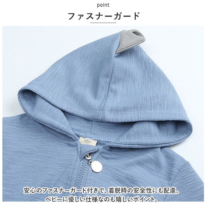 ・安心のファスナーガード付きで、着脱時の安全性にも配慮。ベビーに優しい仕様なのも嬉しいポイント。