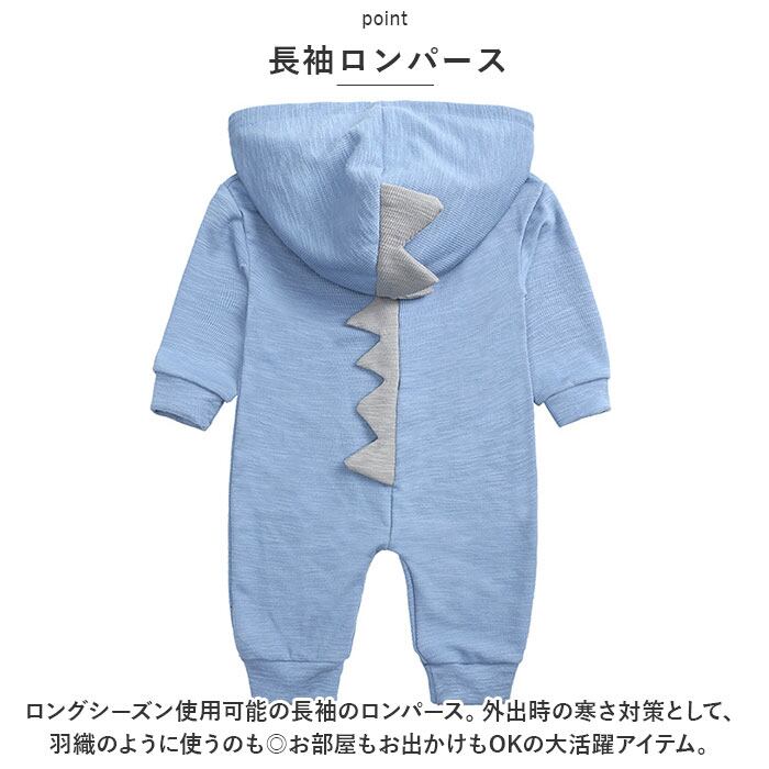 ・ロンパースには怪獣フードがついているので、頭まですっぽり被って怪獣に変身☆ベビーならではの可愛さを存分に楽しめる♪写真撮影にもGOOD。