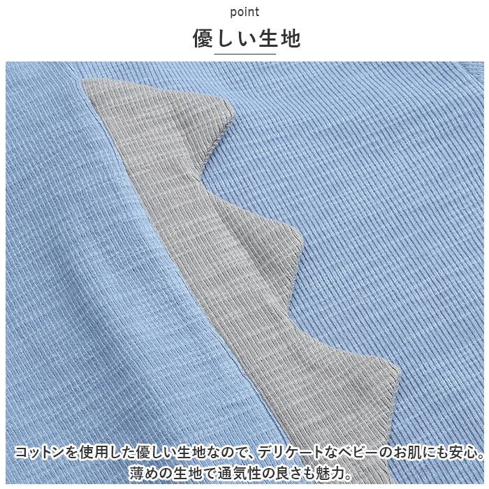 ・コットンを使用した優しい生地なので、デリケートなベビーのお肌にも安心。薄めの生地で通気性の良さも魅力。