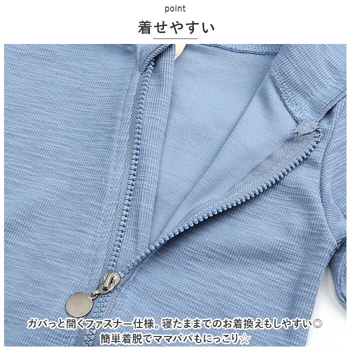 ・ガバっと開くファスナー仕様。寝たままでのお着換えもしやすい◎簡単着脱でママパパもにっこり☆