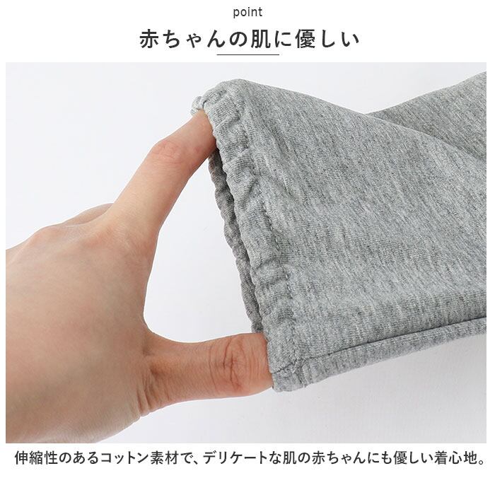 ・伸縮性のあるコットン素材で、デリケートな肌の赤ちゃんにも優しい着心地。