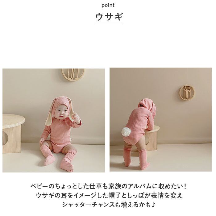 ベビー服 ロンパース 通販 オールインワン カバーオール ボディスーツ 長袖 ベビー服 子供服 綿 コットン 帽子付き うさ耳 靴下付き 3点セット お出かけ 外出 部屋着 パジャマ 春 秋 冬 女の子 男の子 かわいい 可愛い
