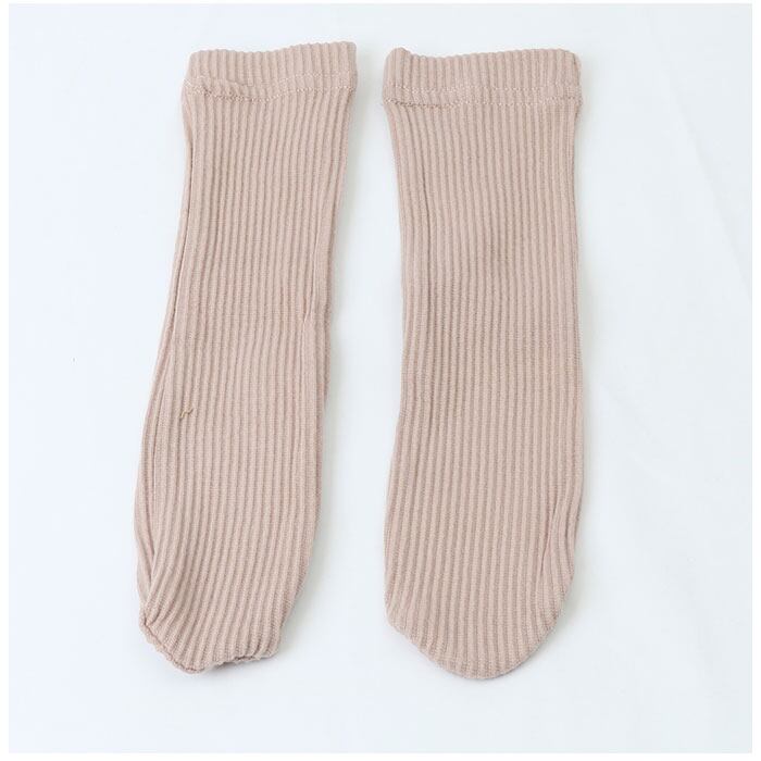 ・同色のロンパース、帽子、靴下の3点セットでセットアップ完了。ナチュラルカラーが全身をやさしくベビーを包み込む。