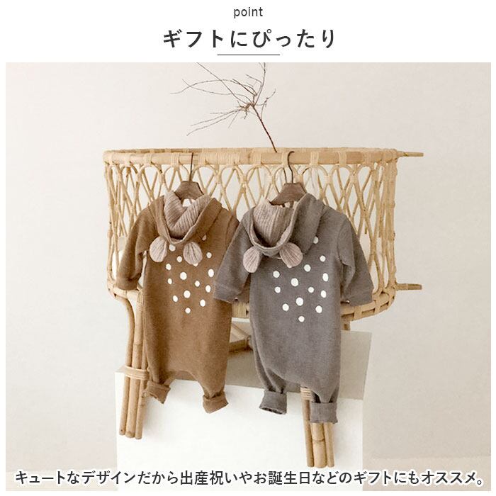 ・フードに付いた耳とバックのドット柄がとってもキュートなロンパースが発売♪