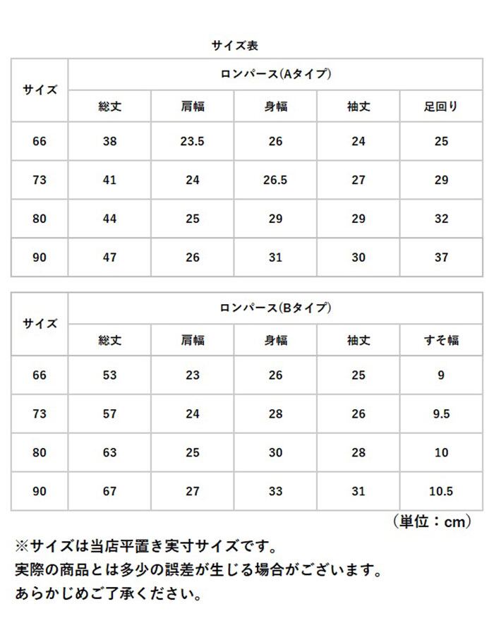 ・ベビーの成長に合わせて選べる、4サイズ展開。兄弟・姉妹でお揃いコーデもおすすめ。