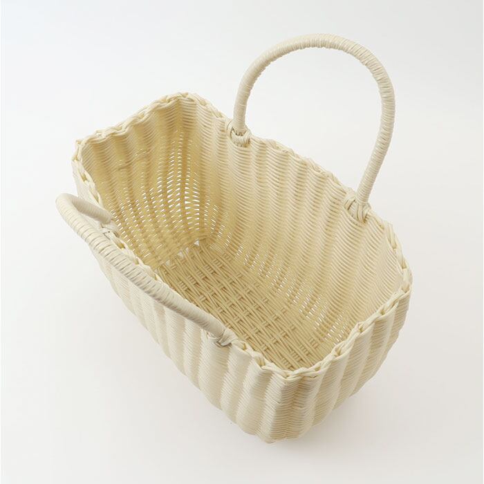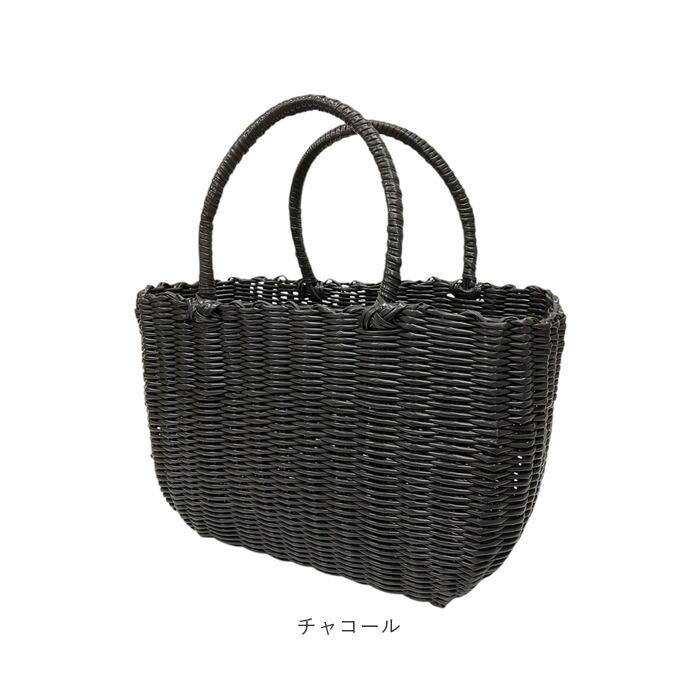・ポリエチレン素材のチューブを使い、職人が1つ1つ丁寧に編み上げたかごバッグ。