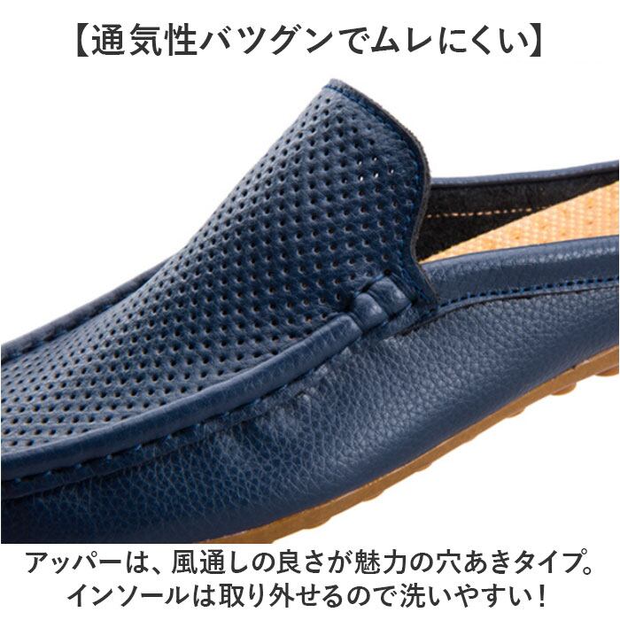 ・アッパーは、風通しの良さが魅力の穴あきタイプ。インソールは取り外せるので洗いやすい!