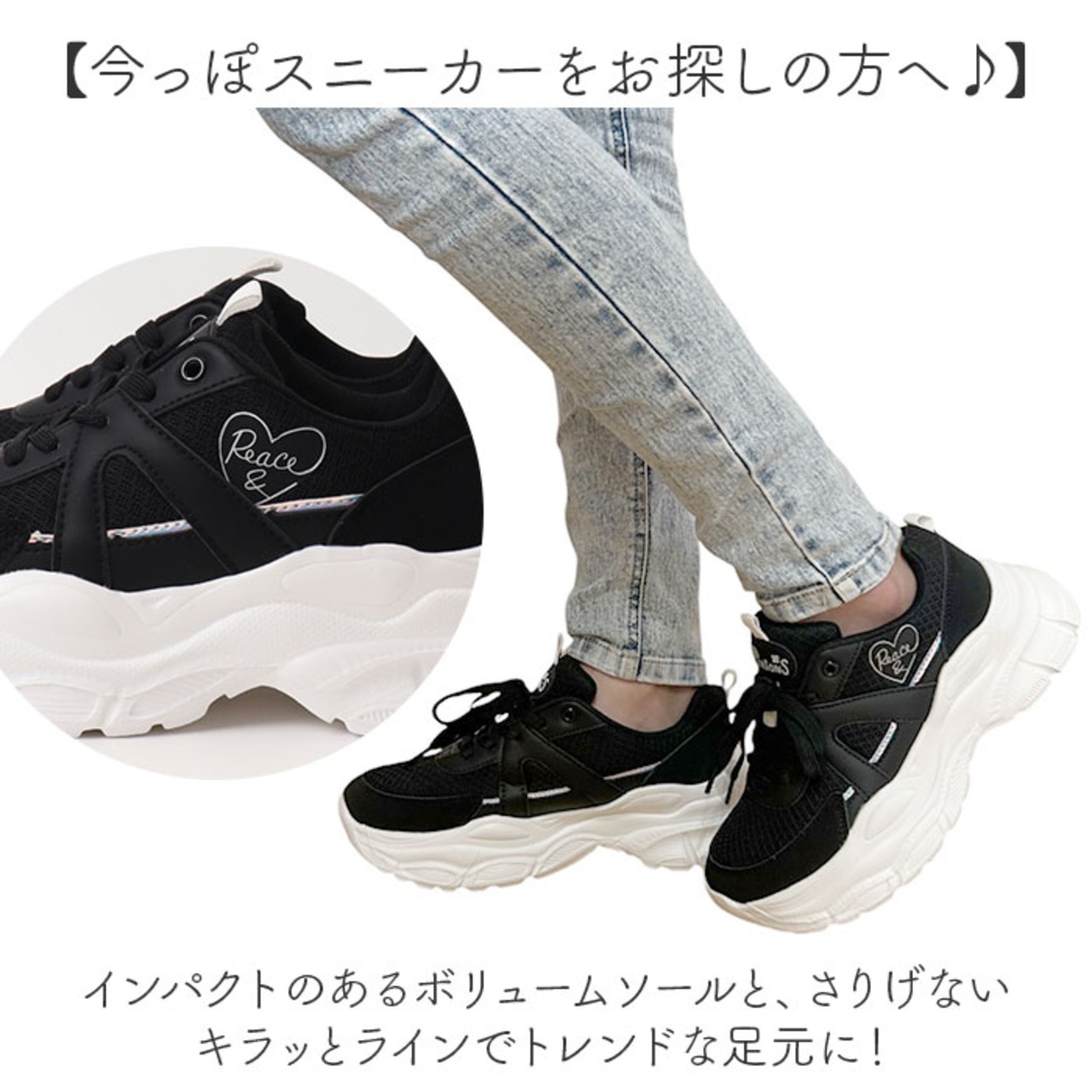 ・インパクトのあるボリュームソールと、さりげないキラッとラインでトレンドな足元に!