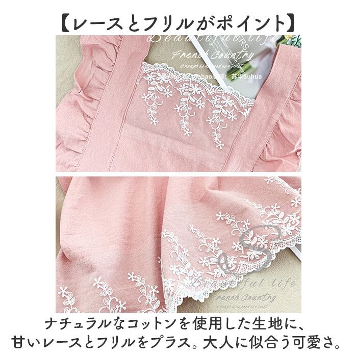 ・ナチュラルなコットンを使用した生地に、甘いレースとフリルをプラス。大人に似合う可愛さ。