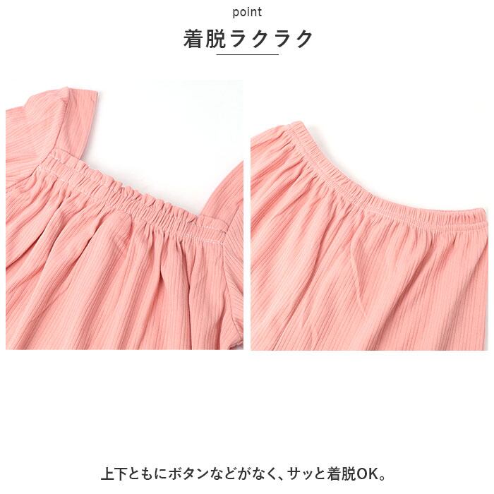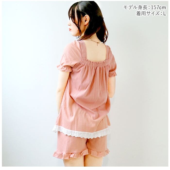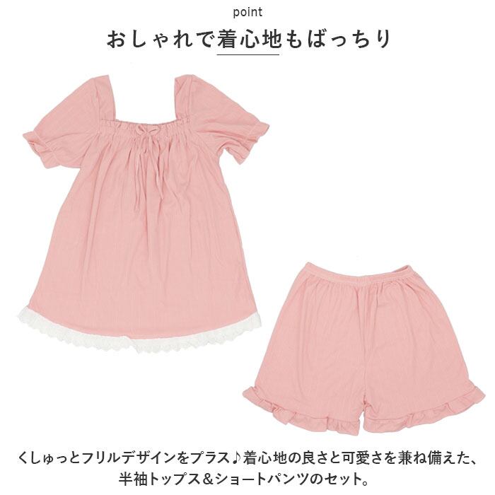・くしゅっとフリルデザインをプラス♪着心地の良さと可愛さを兼ね備えた、半袖トップス&ショートパンツのセット。