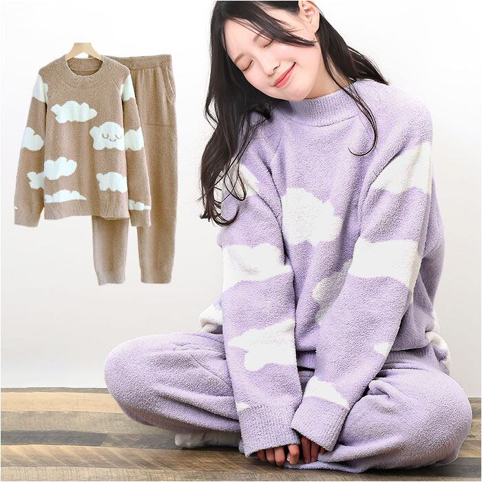 ・プルオーバーにプリントされた、優しげな雲のデザインがポイント♪温かみのある淡いカラーリングで気持ちも安らぐアイテム。