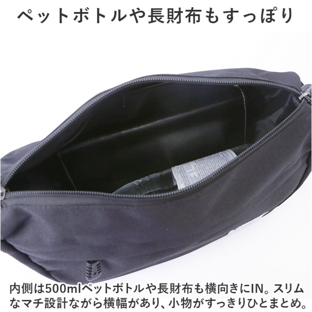 ・内側は500mlペットボトルや長財布も横向きにIN。スリムなマチ設計ながら横幅があり、小物がすっきりひとまとめ。