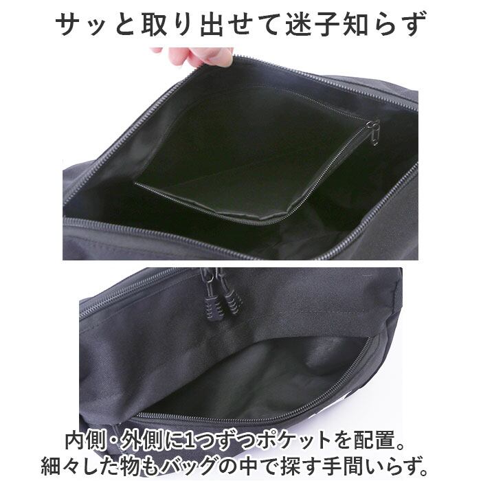 ・内側・外側に1つずつポケットを配置。細々した物もバッグの中で探す手間いらず。
