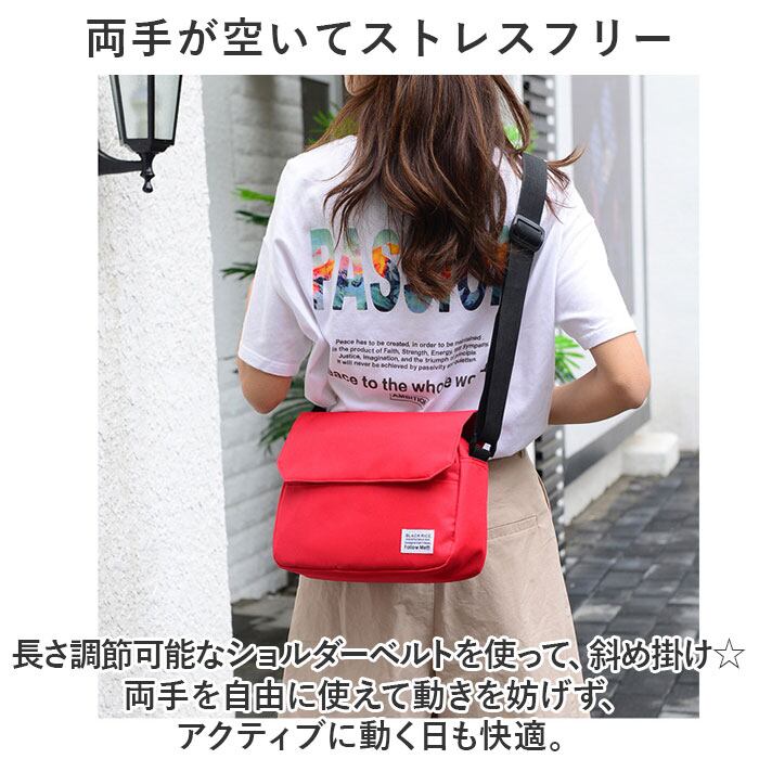 ・長さ調節可能なショルダーベルトを使って、斜め掛け☆両手を自由に使えて動きを妨げず、アクティブに動く日も快適。
