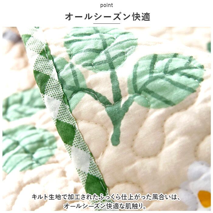・キルト生地で加工されたふっくら仕上がった風合いは、オールシーズン快適な肌触り。