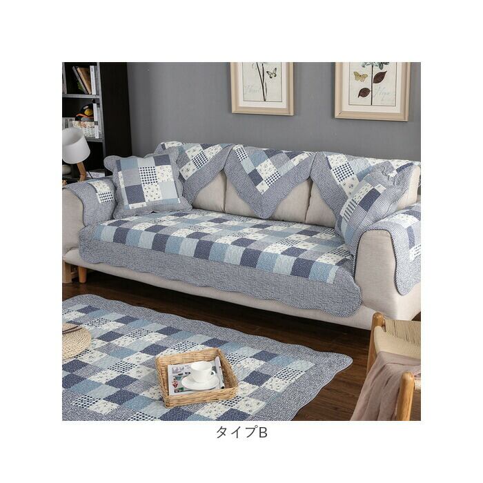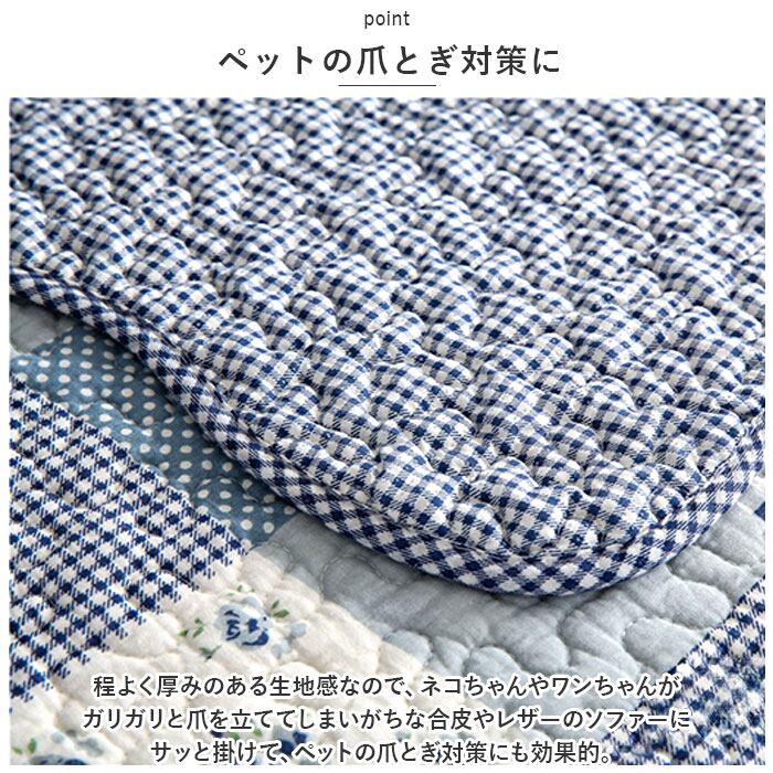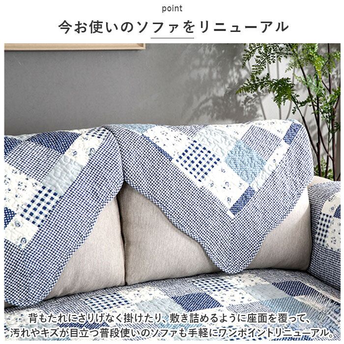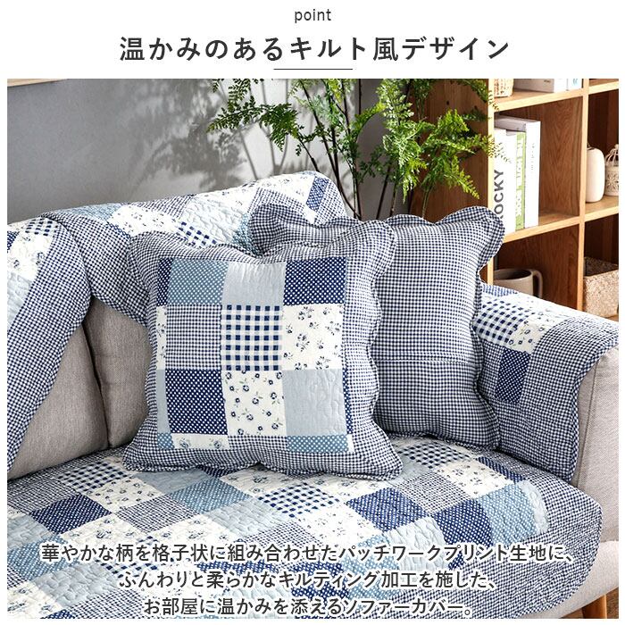 ・華やかな柄を格子状に組み合わせたパッチワークプリント生地に、ふんわりと柔らかなキルティング加工を施した、お部屋に温かみを添えるソファーカバー。