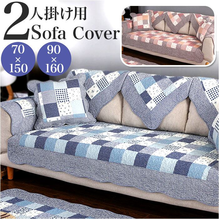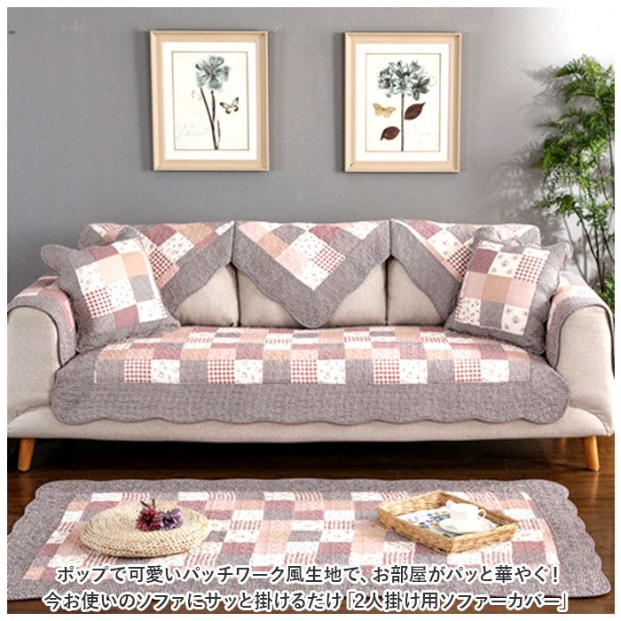 ・ポップで可愛いパッチワーク風生地で、お部屋がパッと華やぐ!今お使いのソファにサッと掛けるだけ「2人掛け用ソファーカバー」