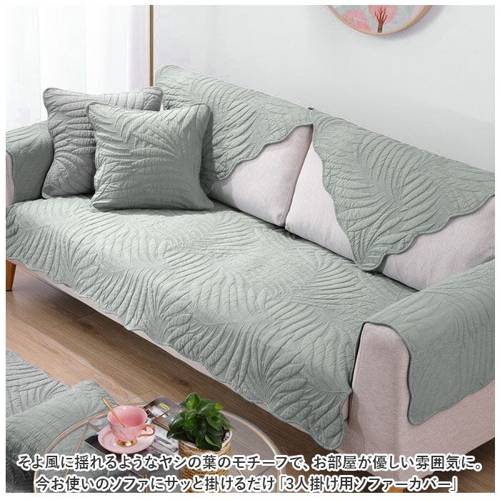 ・そよ風に揺れるようなヤシの葉のモチーフで、お部屋が優しい雰囲気に。今お使いのソファにサッと掛けるだけ「3人掛け用ソファーカバー」