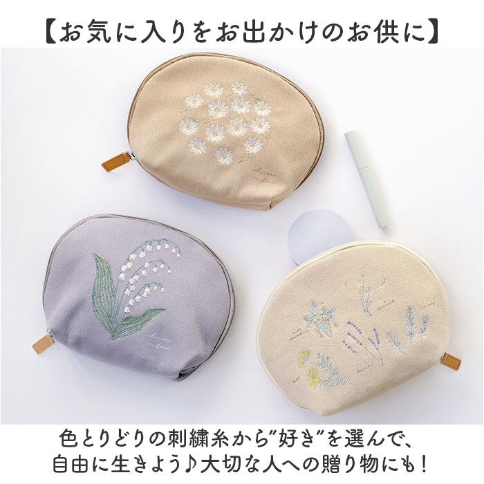 ・細々したアイテムをIN♪持ち歩きに便利な「ito& 刺繍シェルポーチ」。