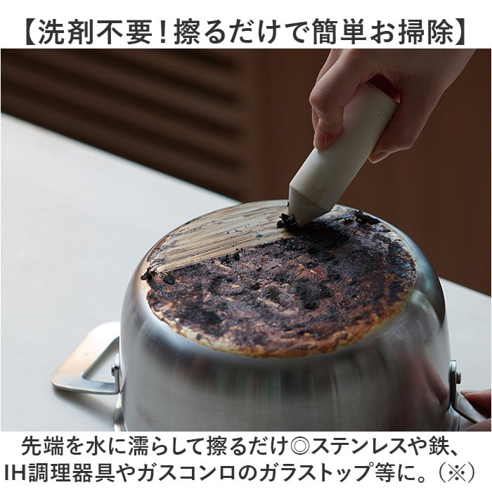 ・先端を水に濡らして擦るだけ◎ステンレスや鉄、IH調理器具やガスコンロのガラストップ等に。