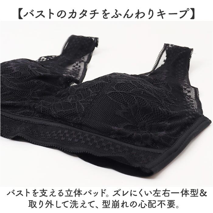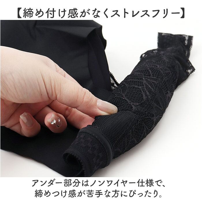 ・アンダー部分はノンワイヤー仕様で、締めつけ感が苦手な方にぴったり。