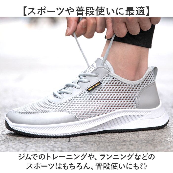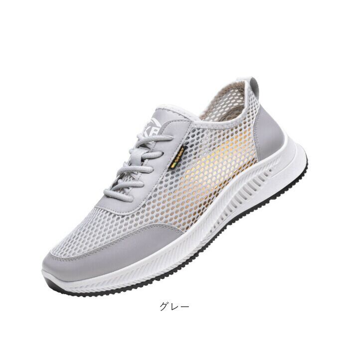 ・アッパー部分は通気性に優れたメッシュ仕様。汗をかいてもムレにくく、乾きやすい!