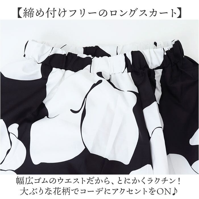 ・幅広ゴムのウエストだから、とにかくラクチン!大ぶりな花柄でコーデにアクセントをON♪