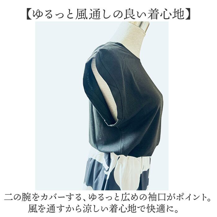 ・二の腕をカバーする、ゆるっと広めの袖口がポイント。風を通すから涼しい着心地で快適に。
