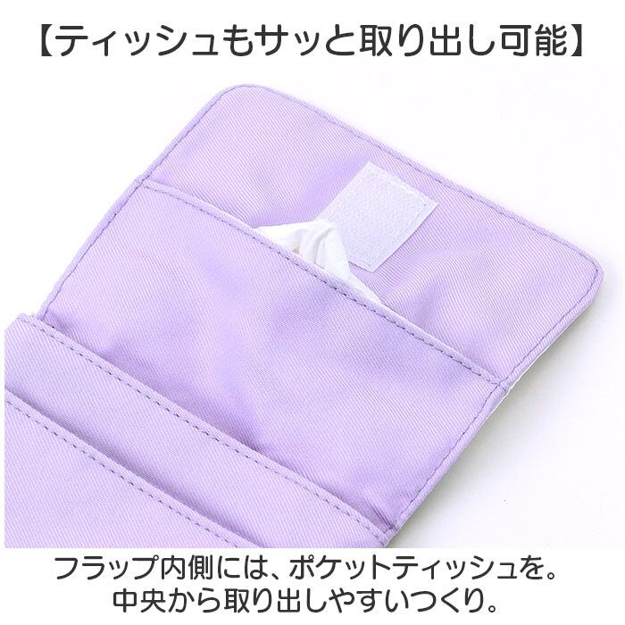 ・フラップ内側には、ポケットティッシュを。中央から取り出しやすいつくり。