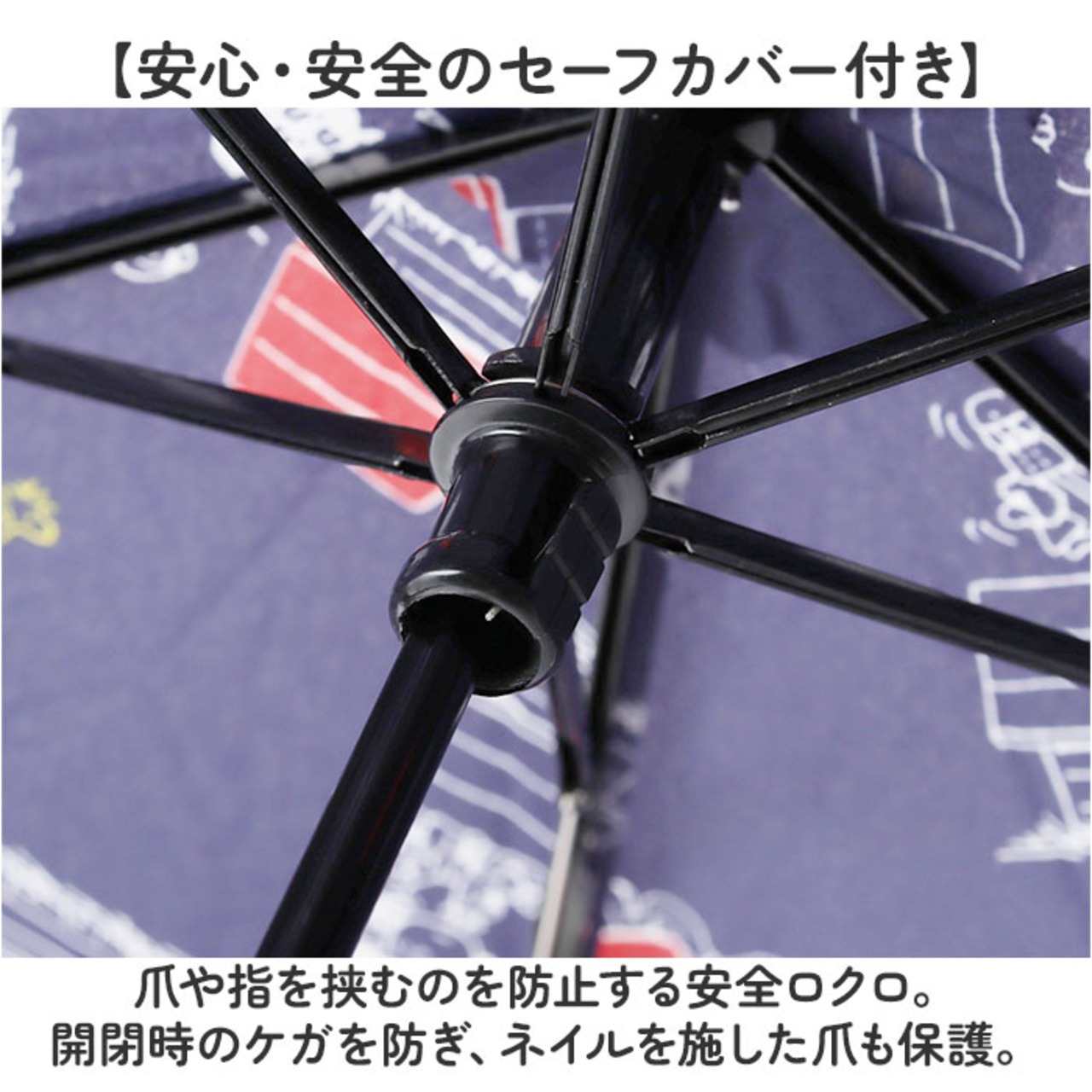 ・爪や指を挟むのを防止する安全ロクロ。開閉時のケガを防ぎ、ネイルを施した爪も保護。