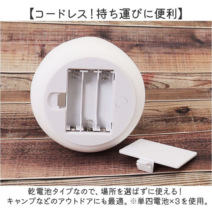 ・乾電池タイプなので、場所を選ばずに使える!キャンプなどのアウトドアにも最適。