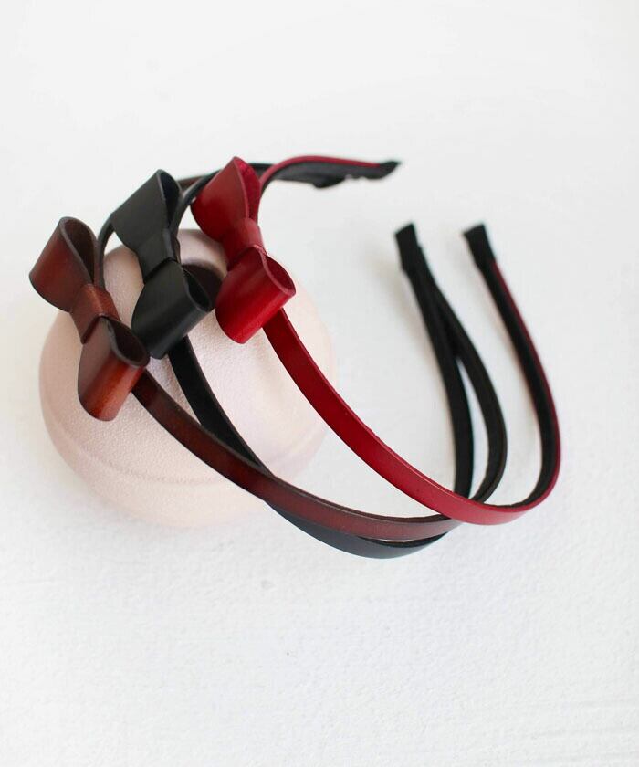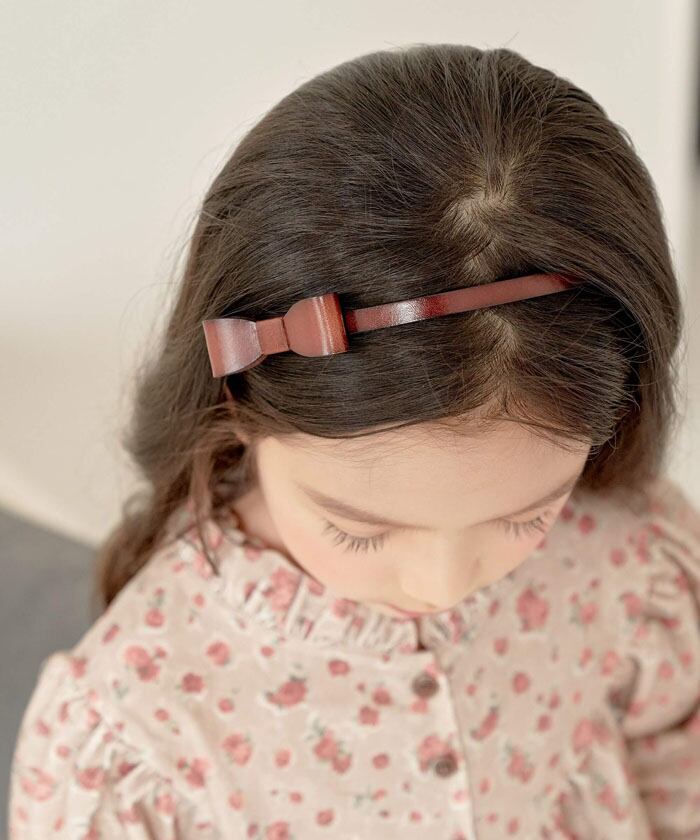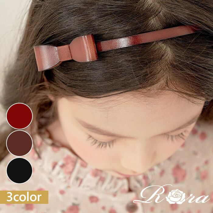 ・シンプルで使いやすいちょっぴり小さめのリボンがクラシカルな雰囲気を魅せる子供服Rora 牛本革リボン カチューシャ (3colors) です。