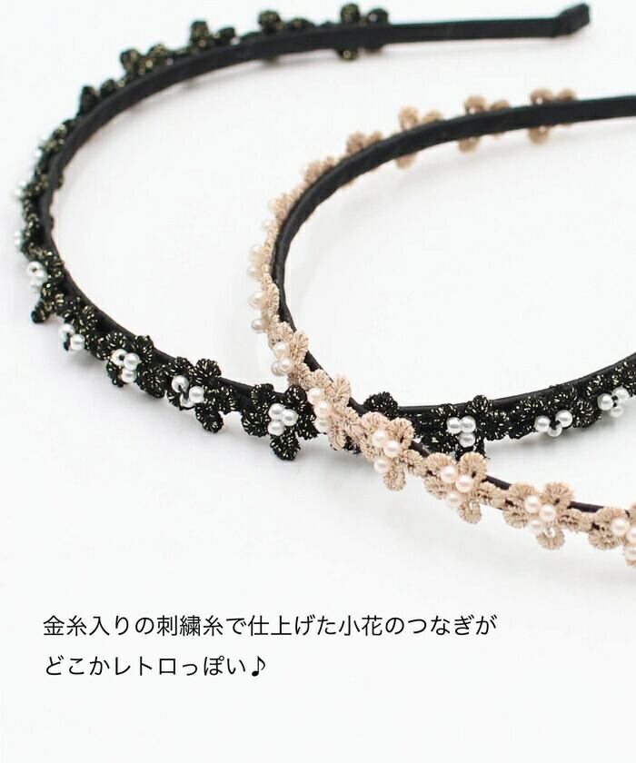 ・金糸入りの刺繍糸で仕上げた小花のつなぎがどこかレトロっぽい♪
