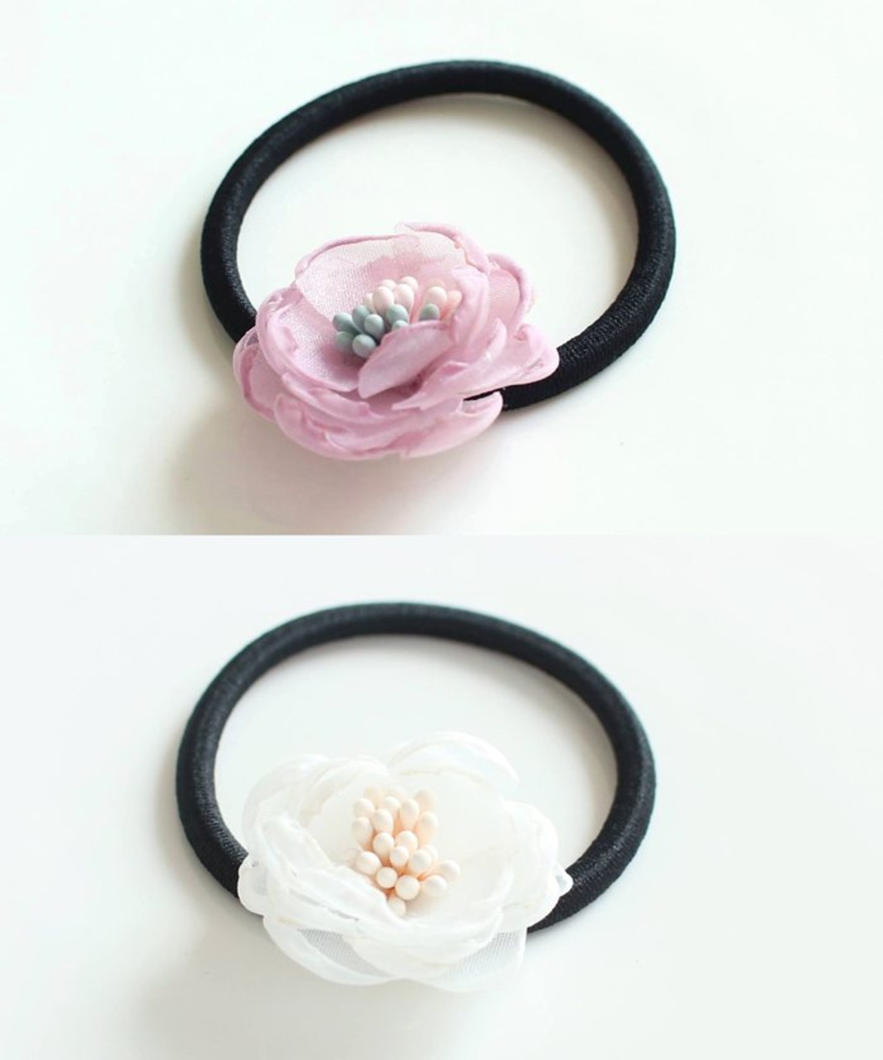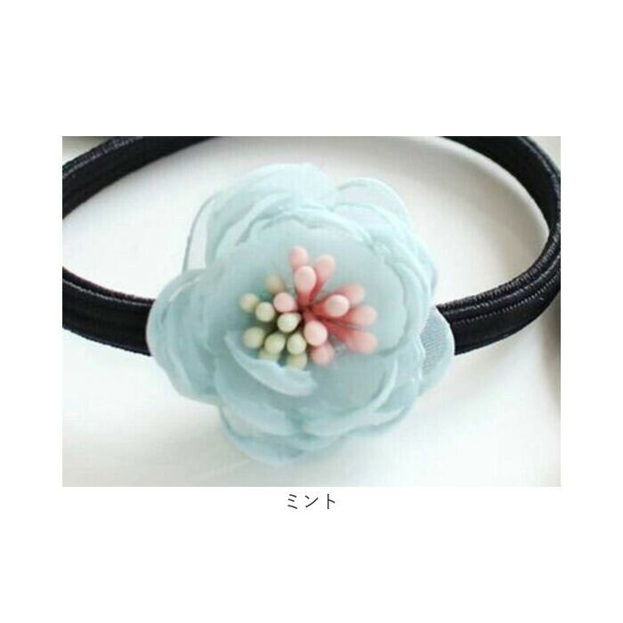 ・オーガンジー素材のふんわりが見る人に上品な印象を与えてくれるので、簡単に結んで可愛くしてあげたいこの季節にぴったりのヘアゴムです〜