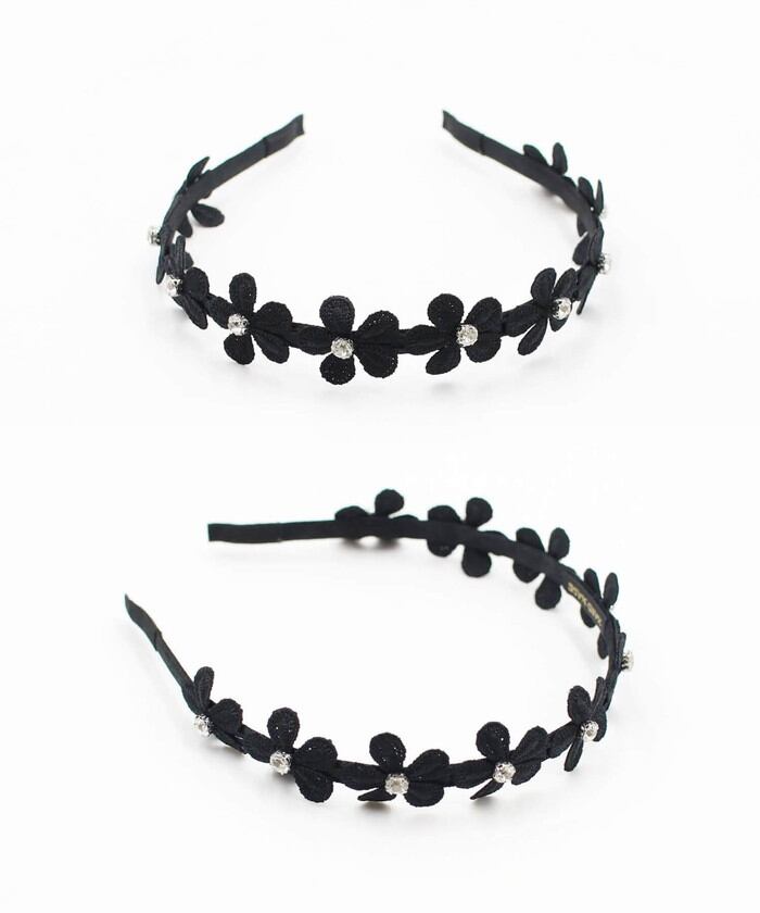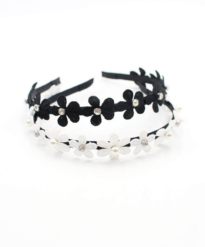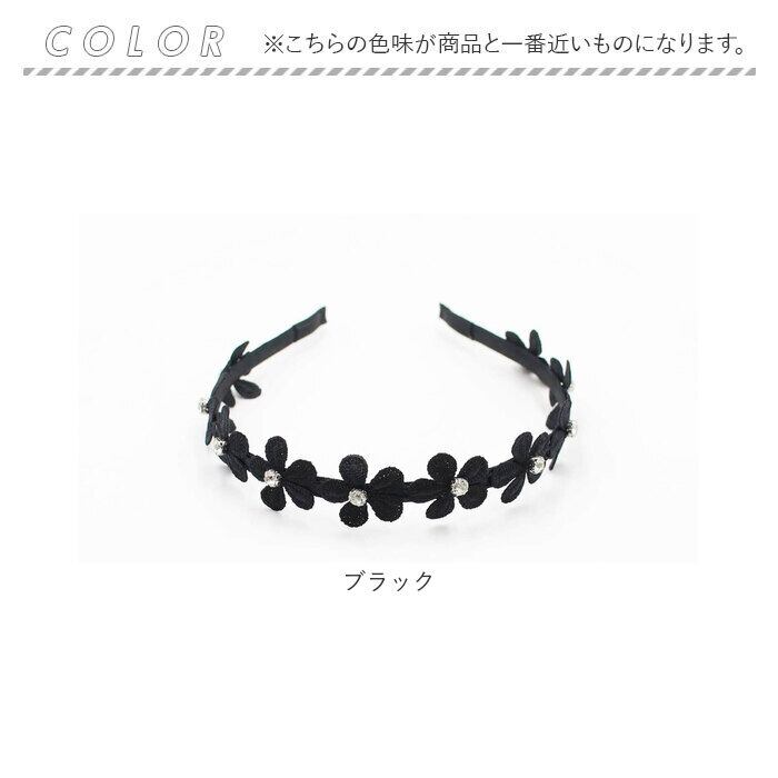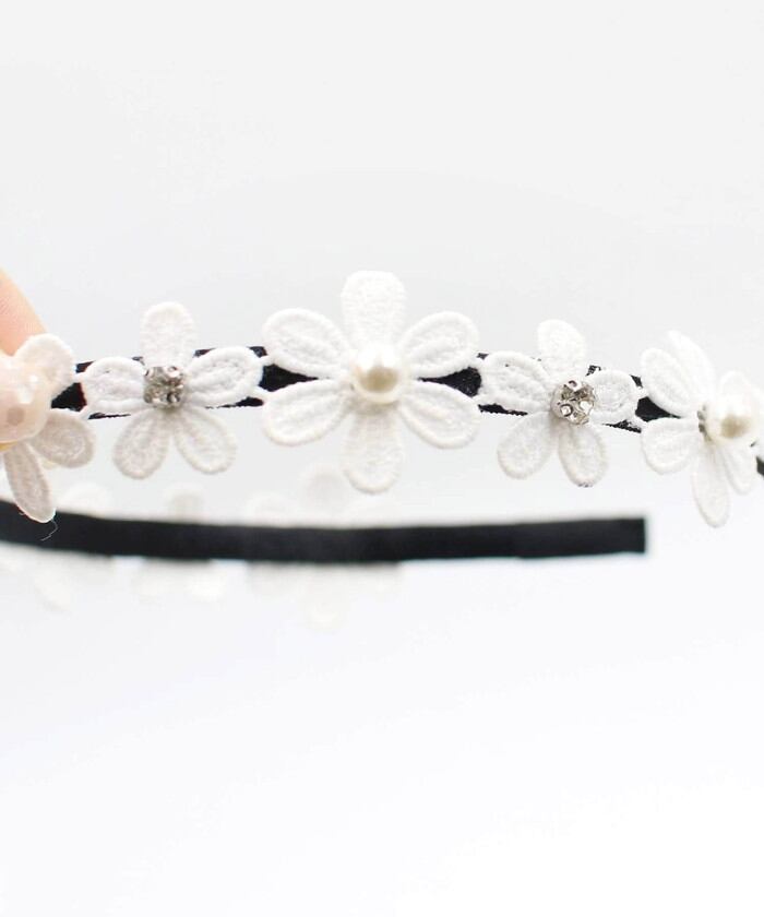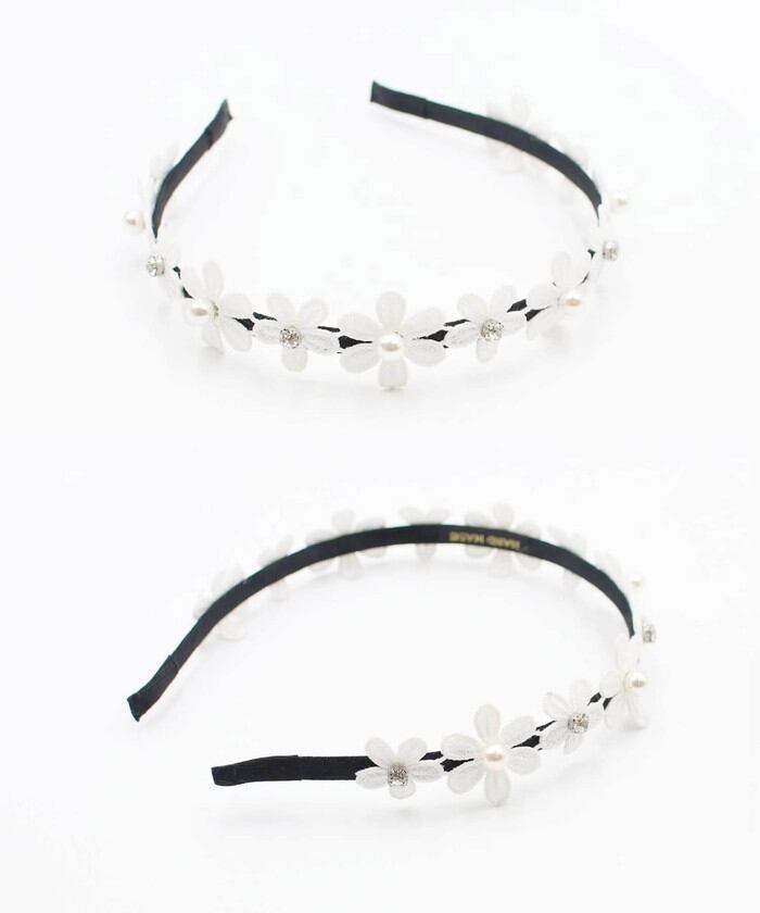 モチーフ全体の長さ:32.5cm/お花1つのサイズ:約2.8cm/カチューシャの幅:7mm