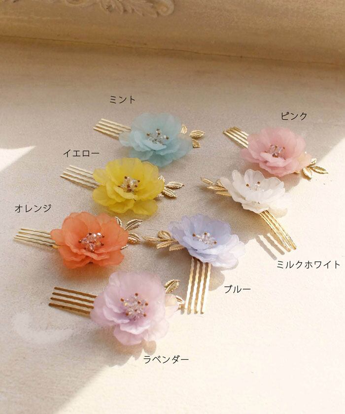 花のサイズ:直径 約4.5cm/コーム全体のサイズ:約7cm