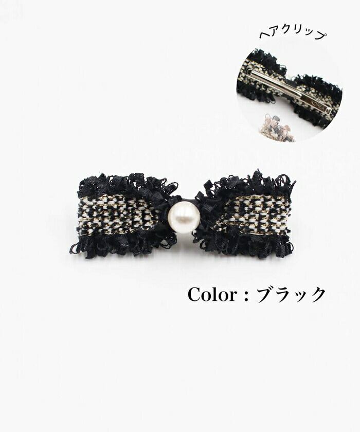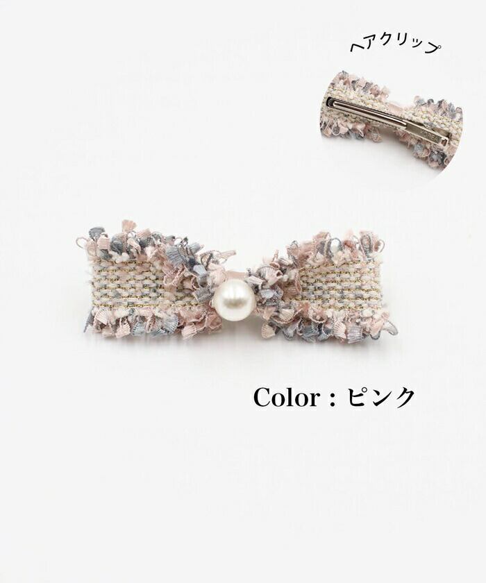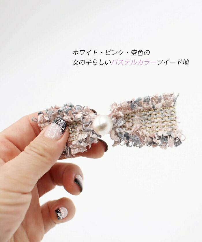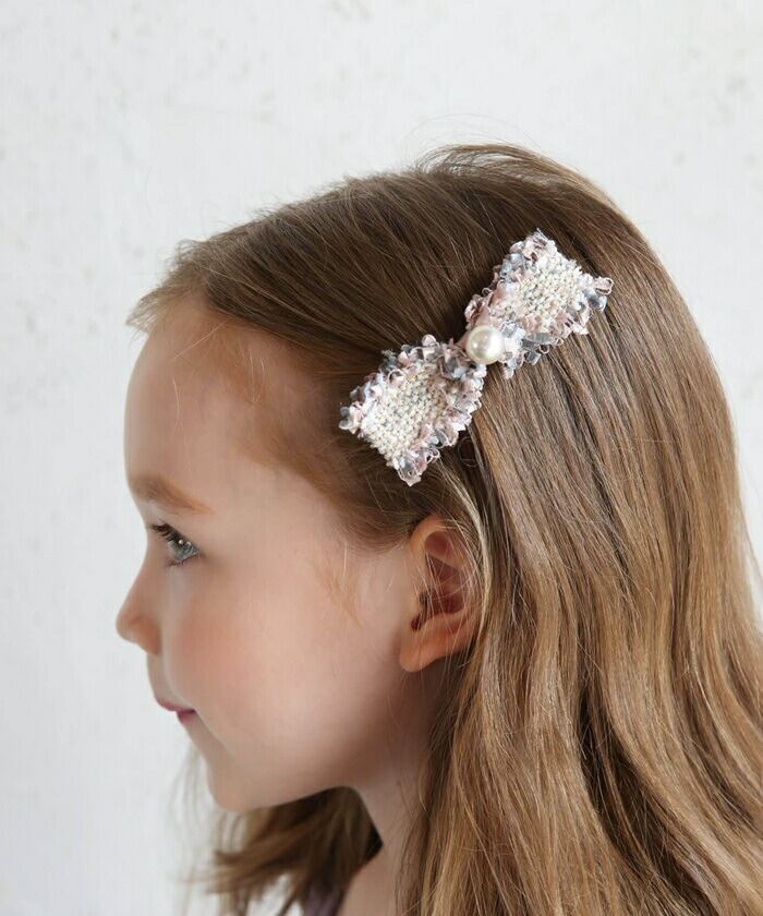・子供のエレガントな瞬間を封じたツイードリボンヘアクリップ