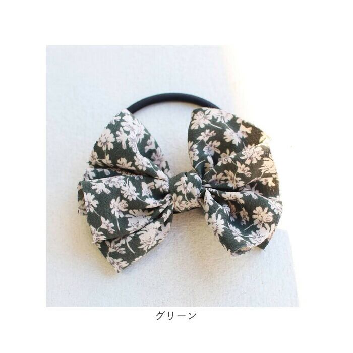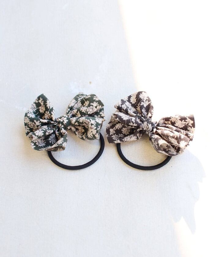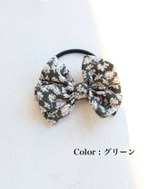 ・大人っぽくてレトロなグリーンカラーとブラウンカラーの花柄のリボンヘアゴム。