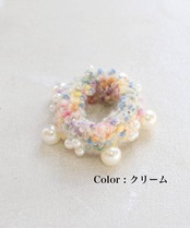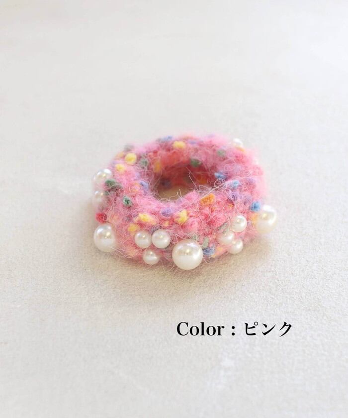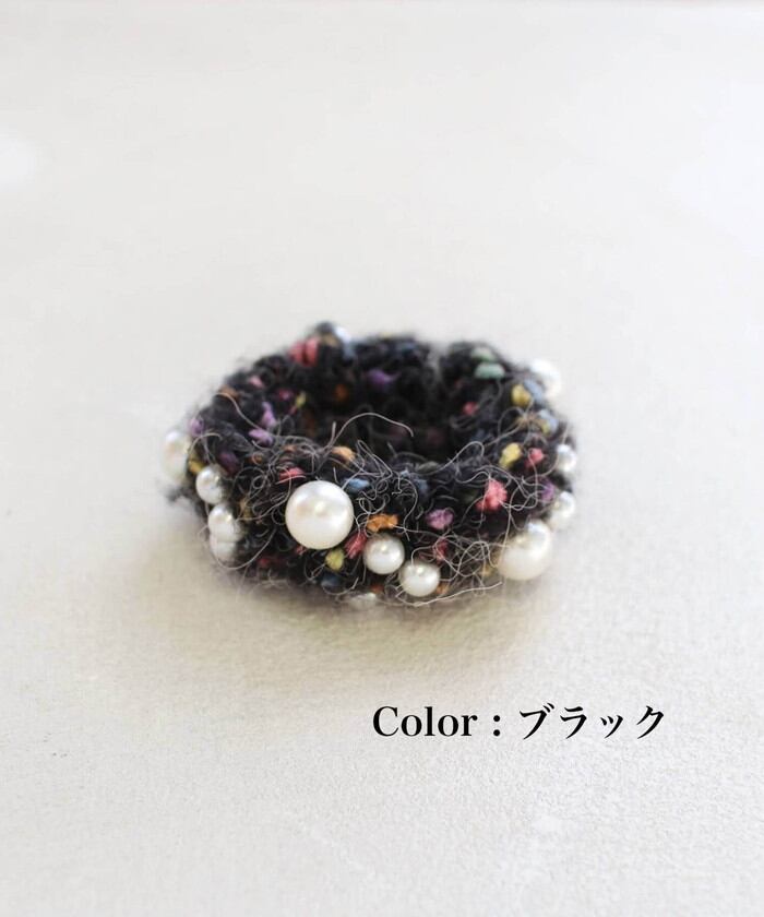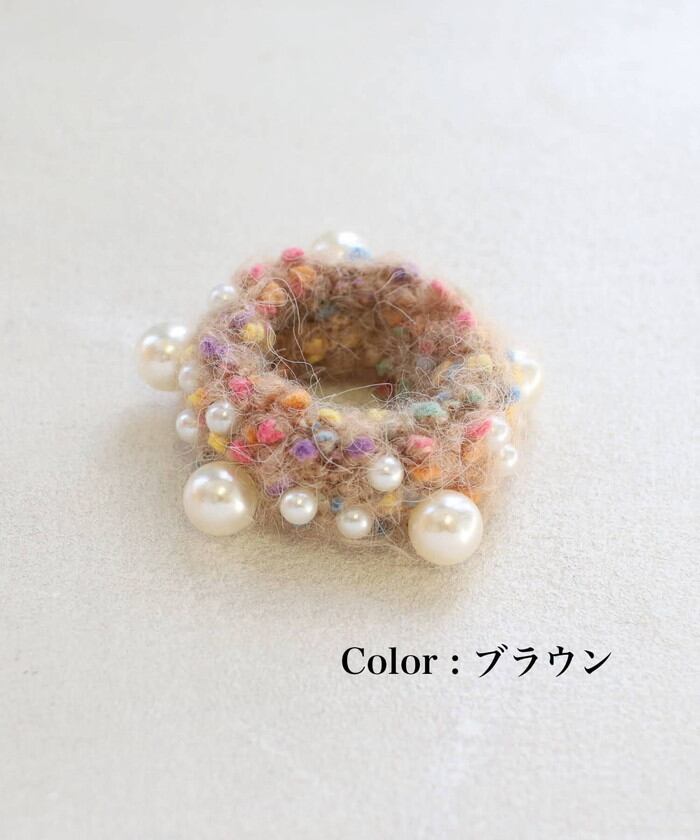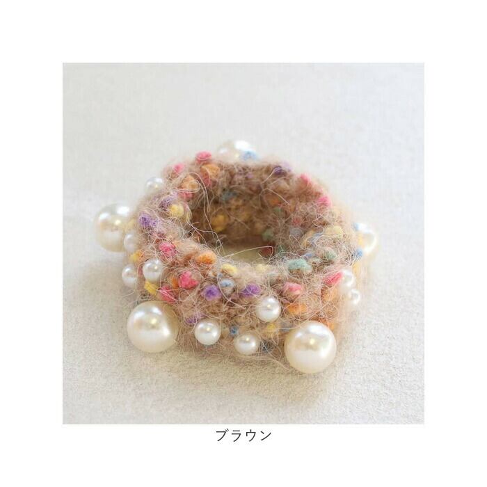 ・手編みのニット素材が温もりを与え、散りばめらちりばめられた 大小さまざまなパールが大人可愛い♪