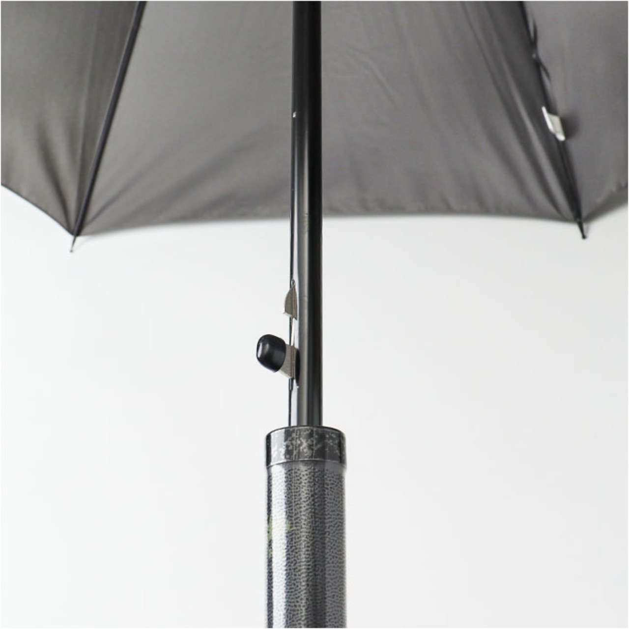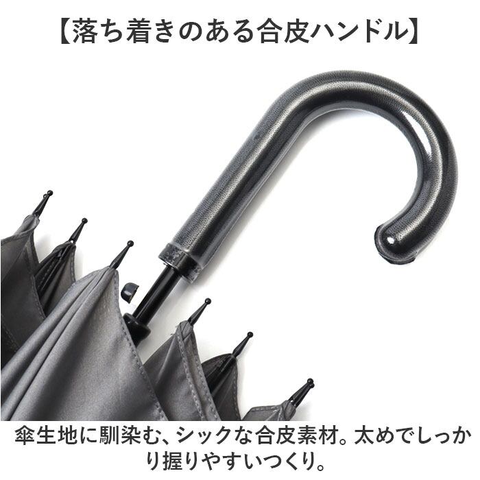 ・傘生地に馴染む、シックな合皮素材。太めでしっかり握りやすいつくり。