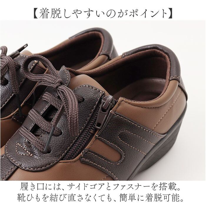 ・履き口には、サイドゴアとファスナーを搭載。靴ひもを結び直さなくても、簡単に着脱可能。