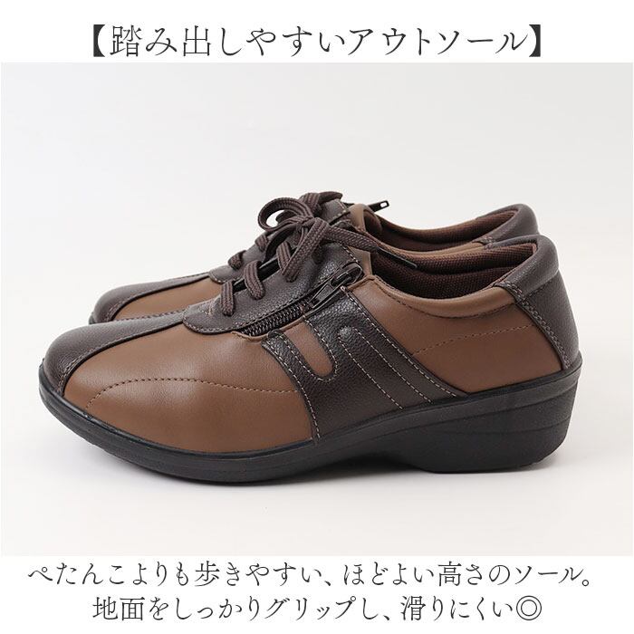 ・ぺたんこよりも歩きやすい、ほどよい高さのソール。地面をしっかりグリップし、滑りにくい◎