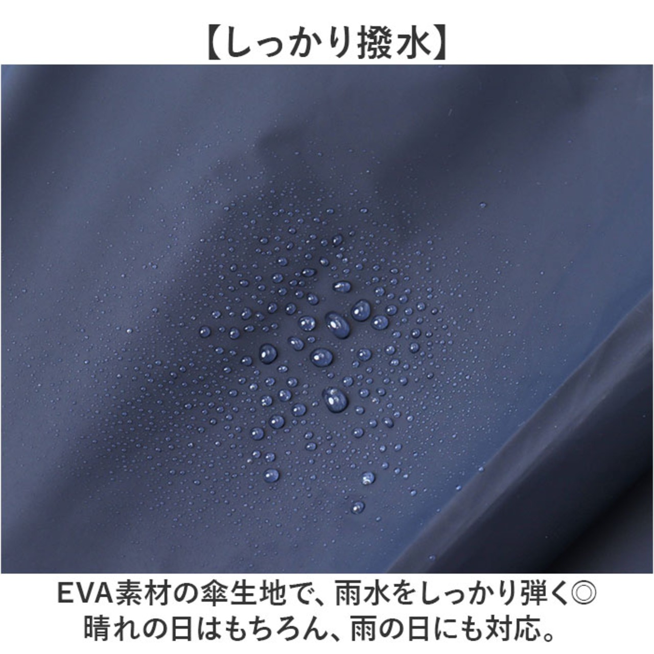 ・EVA素材の傘生地で、雨水をしっかり弾く◎晴れの日はもちろん、雨の日にも対応。