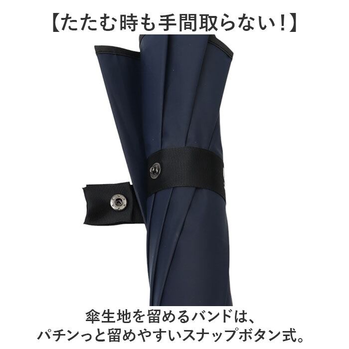 ・傘生地を留めるバンドは、パチンっと留めやすいスナップボタン式。