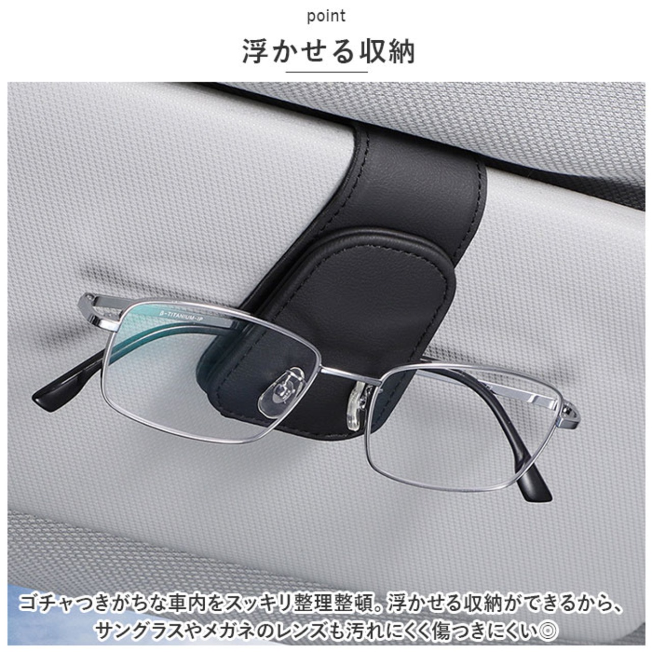・ゴチャつきがちな車内をスッキリ整理整頓。浮かせる収納ができるから、サングラスやメガネのレンズも汚れにくく傷つきにくい◎