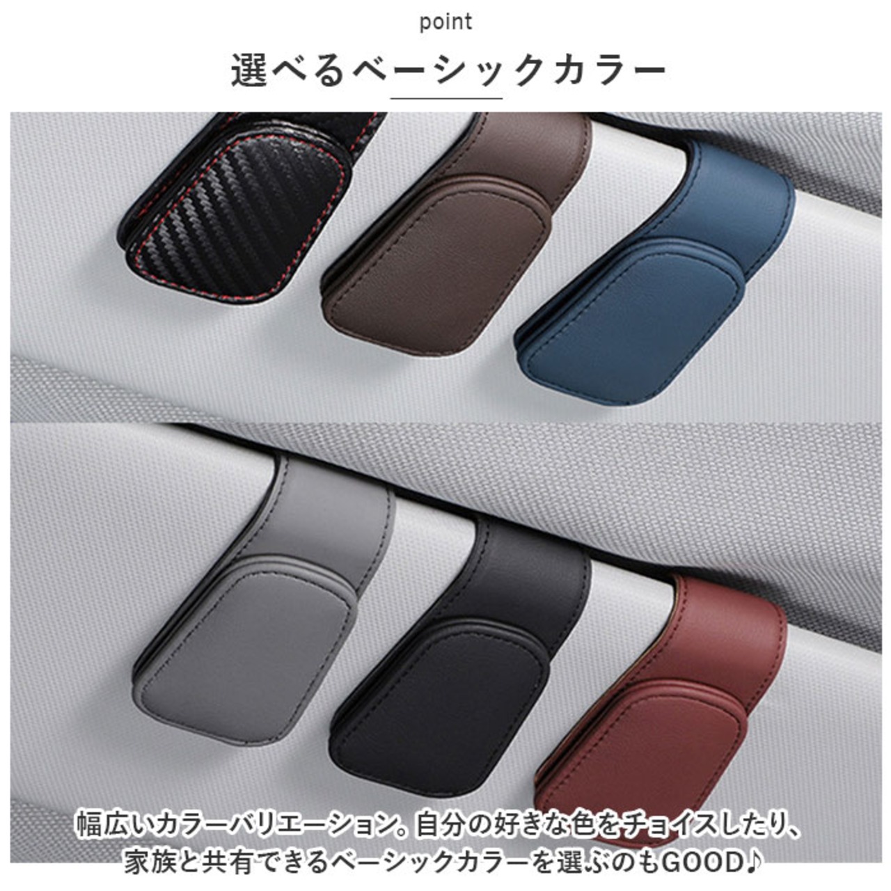 ・サンバイザーがあれば、ほとんどの車に取り付け可能!車種を選ばすに使えるのも嬉しいポイント。